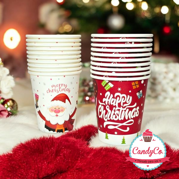 Set de Vasos Descartables Estampados con Diseño de Navidad Papá Noel Merry Christmas, Happy Christmas X10