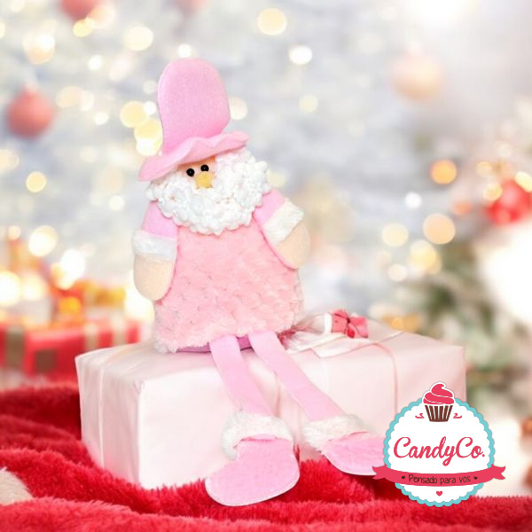 Adorno de Navidad Papá Noel Rosa de Peluche con Piernas Largas 33Cm