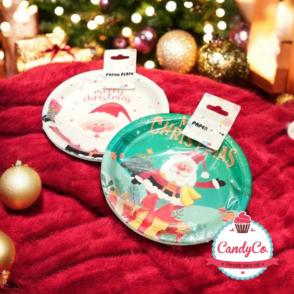 Set de Platos Descartables Estampados X10 con Diseño de Navidad Papá Noel Merry Christmas Chicos