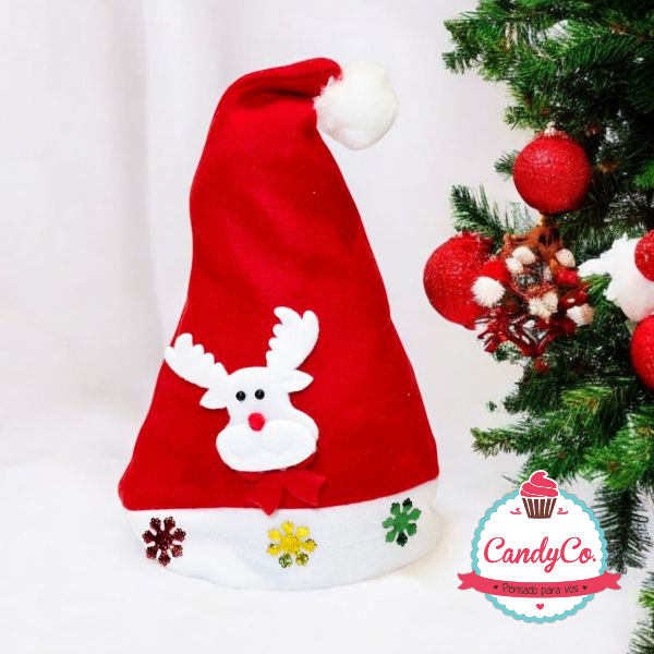 Gorro de Navidad Papá Noel Paño con Copos de Nieve con Brillos y Muñeco