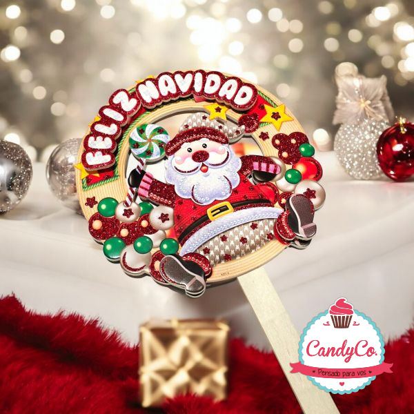 Adorno Estaca Cartel de Papá Noel Feliz Navidad