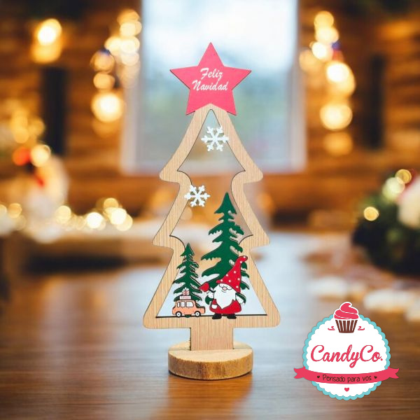 Adorno con Base de Madera y Diseño de Árbol, Pino de Navidad