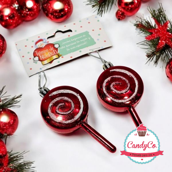 Set de Adornos Colgantes de Navidad con Forma de Paletas, Chupetines con Brillos X2