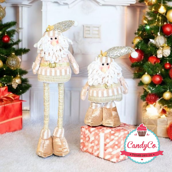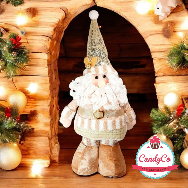 Muñeco Adorno de Navidad de Peluche Papá Noel Beige con Cinto y Gorro Dorado 45Cm