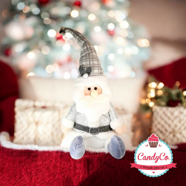 Muñeco Adorno de Navidad de Peluche Papá Noel Sentado Plateado 39Cm