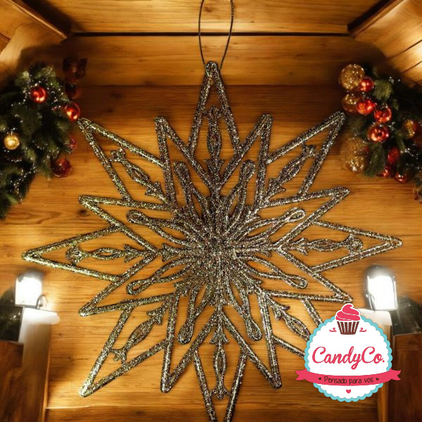 Adorno para Colgar con Forma de Estrella Calada Dorada 24Cm