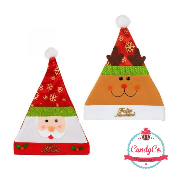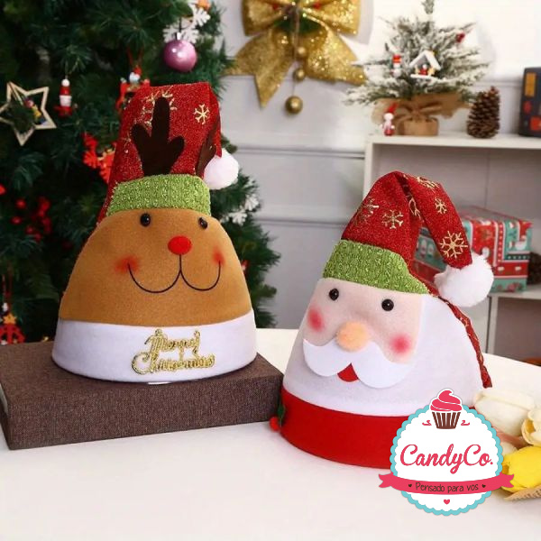 Gorro de Navidad con Diseño de Papá Noel, Reno y Copos de Nieve con Brillos