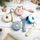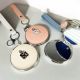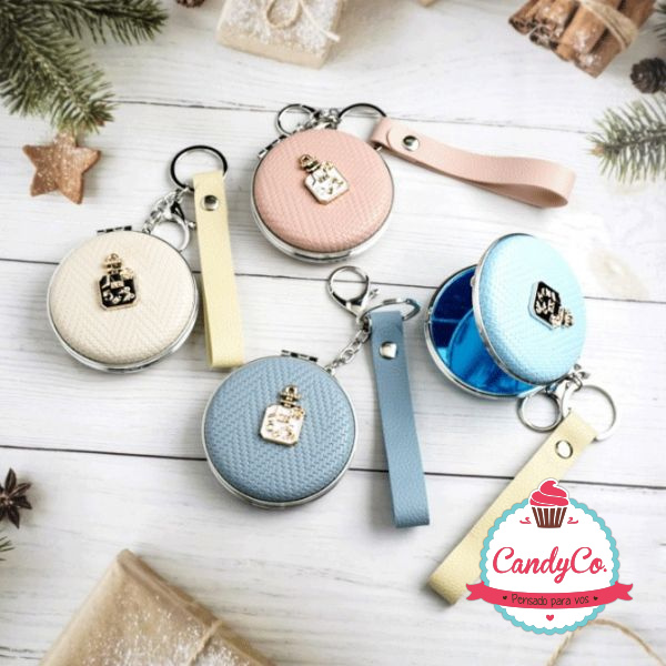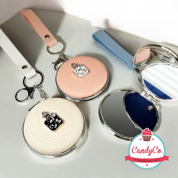 Espejo Doble de Mano Redondo Pastel con Textura, Aplique de Metal y Correa de Cuerina