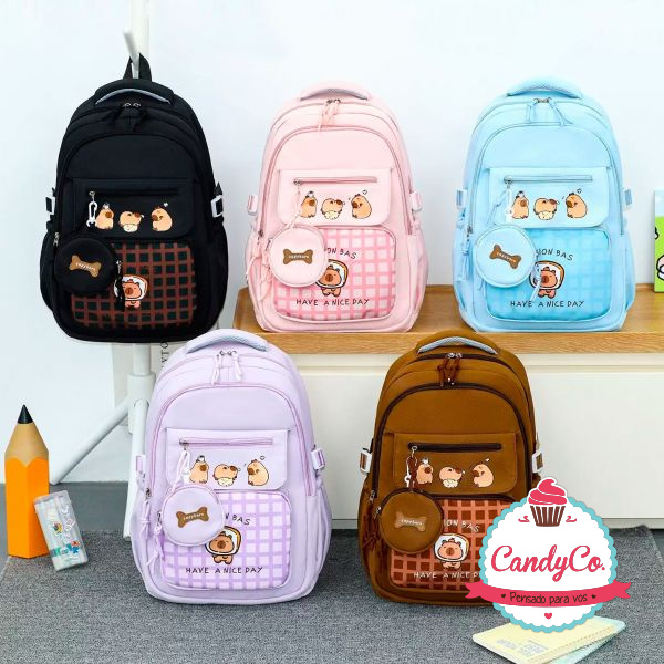 Mochila con Diseño de Carpincho, Capybara, Capibara Bolsillo, Solapa y Mini Estuche Redondo