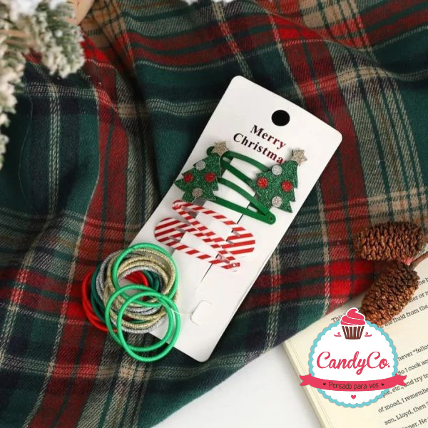 Set de Hebillas para el Pelo X4 y Colitas X15 con Diseño de Navidad