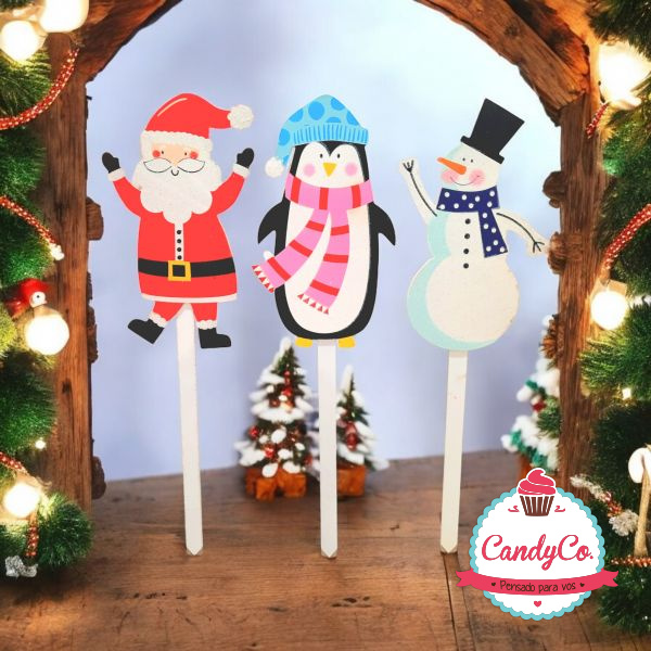 Adorno Estaca, Cartel de Navidad con Diseño de Papá Noel, Pinguino, Muñeco de Nieve 60Cm