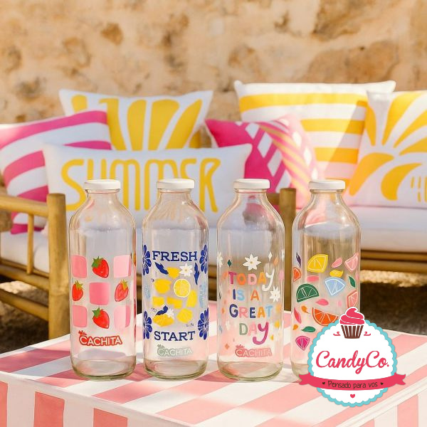Botella de Vidrio Cachita Diseños Frutales, Limón, Fresh Start, Frutilla 1L