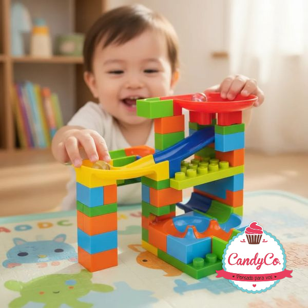 Juego Didáctico Infantil con Bloques y Laberinto de Bolitas 59 Piezas