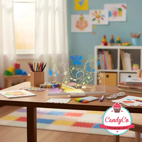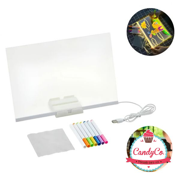 Pizarra, Tableta Mágica Luminosa de Acrílico Transparente con Luces Led Usb y Fibrones 30X30Cm Hitoshy