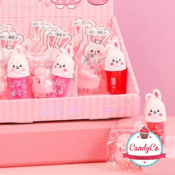 Brillo Labial Líquido, Lip Oil Aceite Facial con Dije Mini Squishy Conejo con Perlas Lucky Model