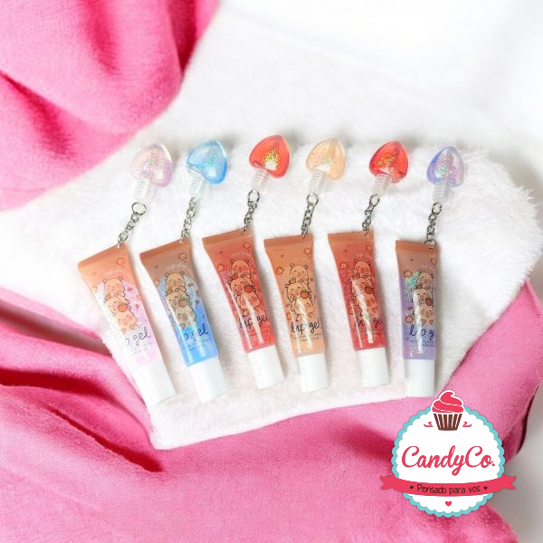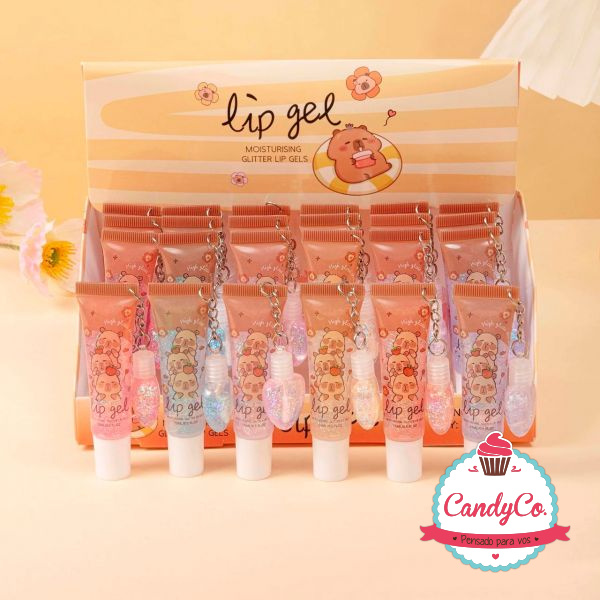Brillo Labial con Dije en Forma de Corazon y Diseño de Capybara, Capibara, Carpincho Lip Gel High Gloss Shine Moisturising Glitter