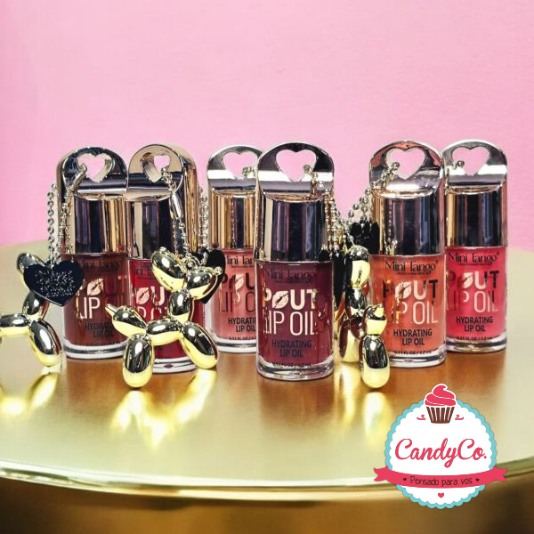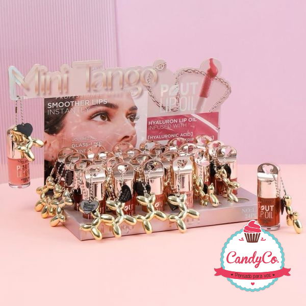 Brillo Labial Líquido con Dije Dorado Perro de Globo y Corazón Pout Lip Oil Hydrating Mini Tango