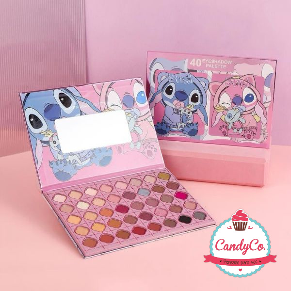 Paleta de Sombras para Ojos X40 con Espejo Diseño de Stitch y Angel con Buzos y Muñecos 40 Eyeshadow Palette
