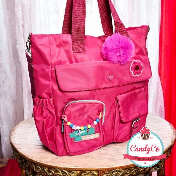 Bolso Cartera Grande con Bolsillos con Correa, Mostacillas, y Pompón con Orejas