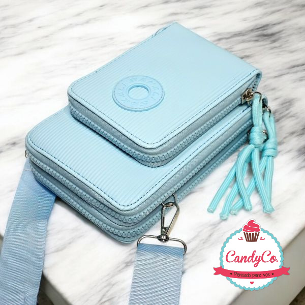 Bandolera Porta Celular con Diseño Rayado y Cordones