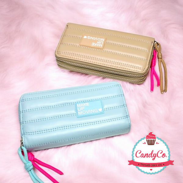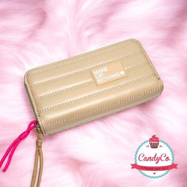 Billetera Grande Inflada con Diseño Rayado Make Up Moving