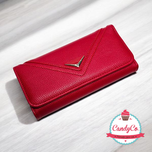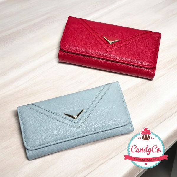 Billetera Grande Lisa con Detalle Dorado y de Color Triángulo