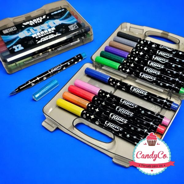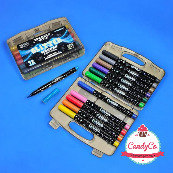 Set de Fibras con Punta de Pincel y Brillos X12 en Estuche Glitter Marker