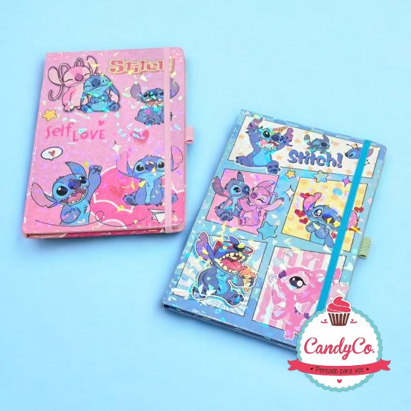 Cuaderno A5 Tapa Dura con Elástico Diseño Estampado de Stitch Holográfico