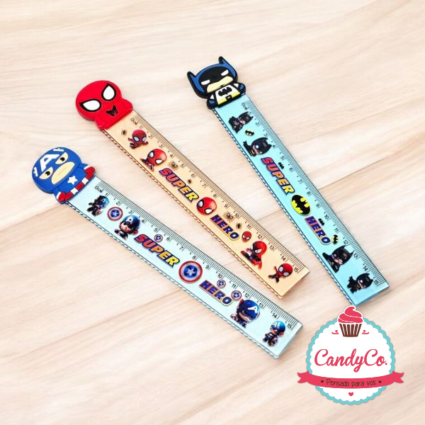 Regla 15Cm Estampada con Diseño de Superhéroes Super Hero y Muñeco de Silicona Spiderman, Hombre Araña, Batman, Capitán América