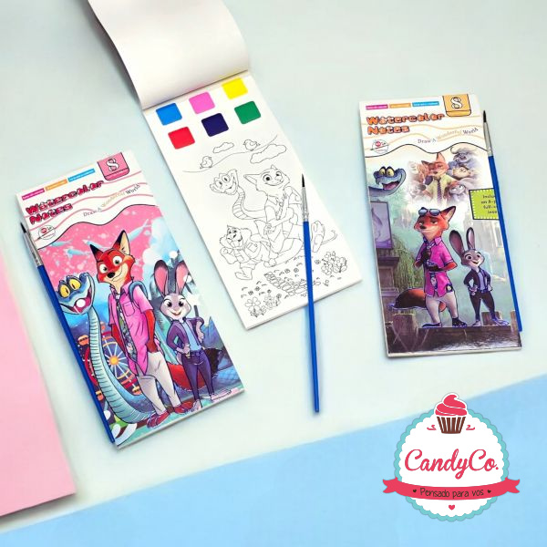 Set de Dibujos para Colorear X8, Acuarelas, y Pincel Zootopia 2