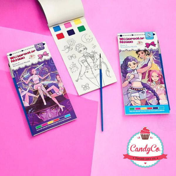 Set de Dibujos para Colorear X8, Acuarelas, y Pincel Guerreras K-Pop