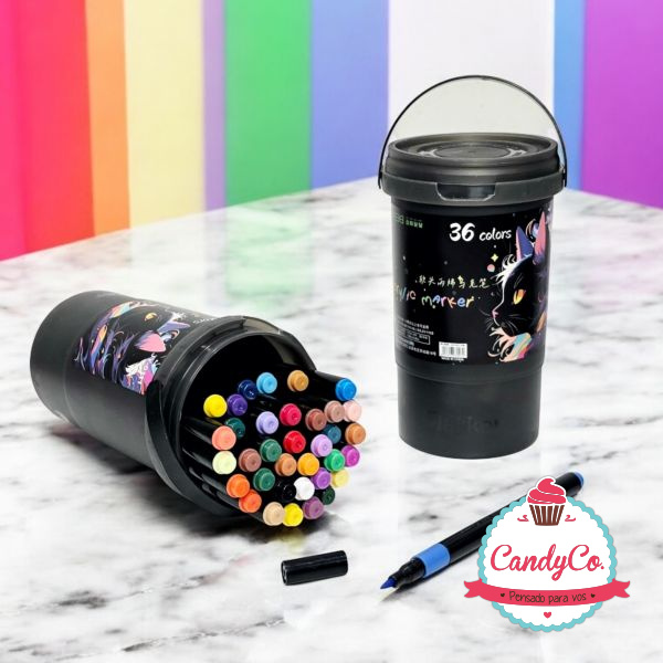 Set de Fibras con Punta de Pincel X36 en Estuche Tubo Gato