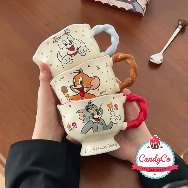 Taza de Cerámica Estampada con Diseño de Tom y Jerry, Perro Spike y Manija Torneada