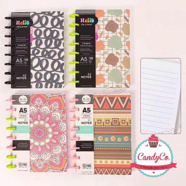 Cuaderno Inteligente A5 Tapa Blanda Diseño de Mandalas, Tramas, Manchas, Espirales