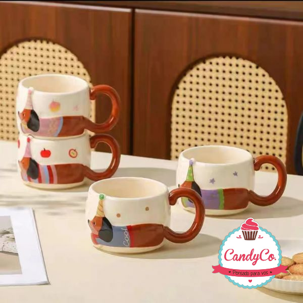 Taza de Cerámica Apilable con Diseño de Perro Salchicha y Estrellas