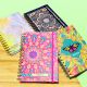 Cuaderno Anillado A5 Tapa Dura con Elástico Diseño Estampado con Diseño de Mandalas y Mariposas Notes