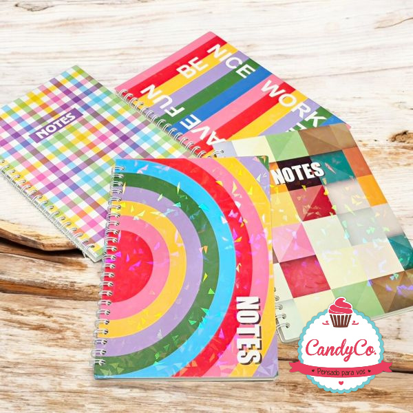 Cuaderno A5 Anillado Estampado con Diseño Cuadriculado, Rayado Multicolor Holográfico