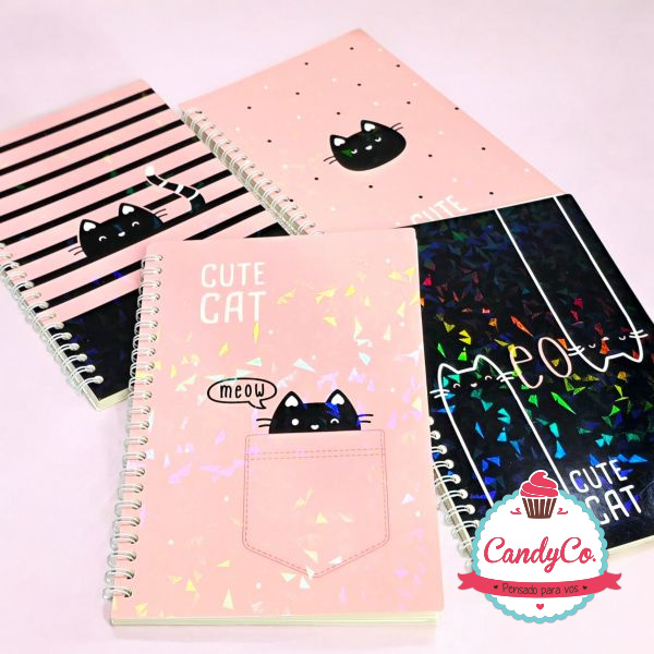 Cuaderno A5 Anillado Estampado con Diseño de Gato Cute Cat Holográfico