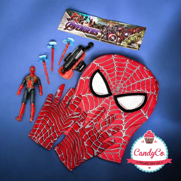 Set con Muñeco del Hombre Araña, Spiderman, Máscara, Guantes y Lanzador con Dardos de Sopapa
