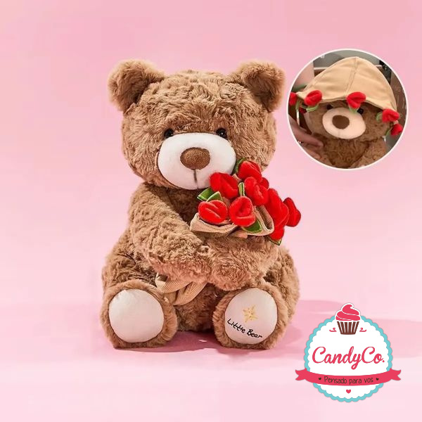 Oso de Peluche con Ramo de Flores, Rosas 30Cm