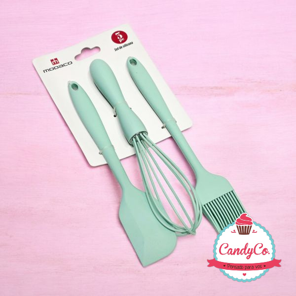 Set X3 Piezas de Silicona Espátula, Batidor, y Pincel Color Pastel Modaco
