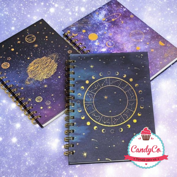 Cuaderno A5 Anillado Tapa Dura Estampada con Diseño de Galaxia, Constelaciones, Planetas