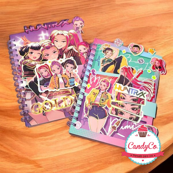 Cuaderno A5 Anillado Estampado con Diseño de las Guerreras K-Pop con Detalles Dorados