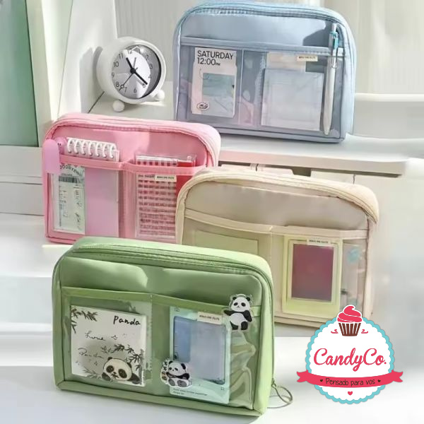 Cartuchera Pastel con Visor Transparente Doble y Bolsillos Internos