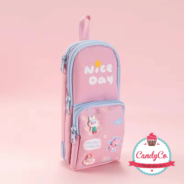 Cartuchera con Triple Cierre, Frase Nice Day y Muñecos de Conejo, Animal