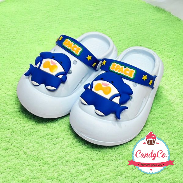 Crocs Infantiles con Pins Diseño Tiburón Space