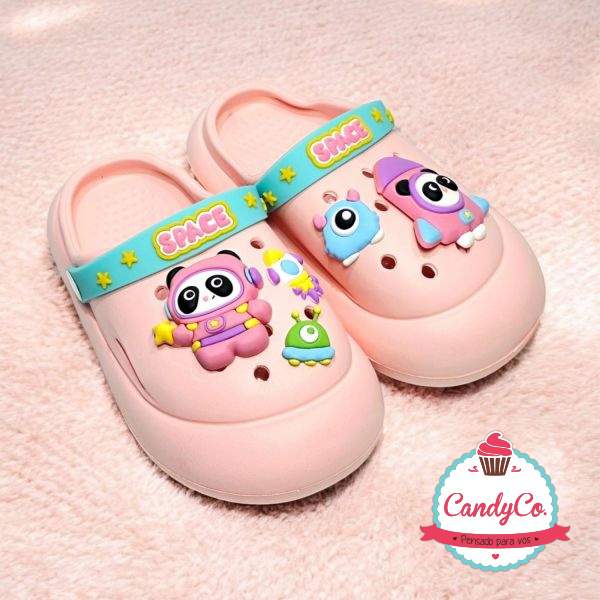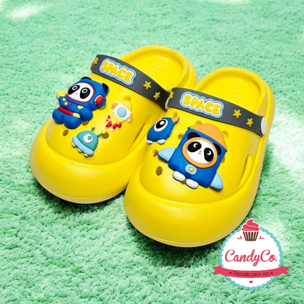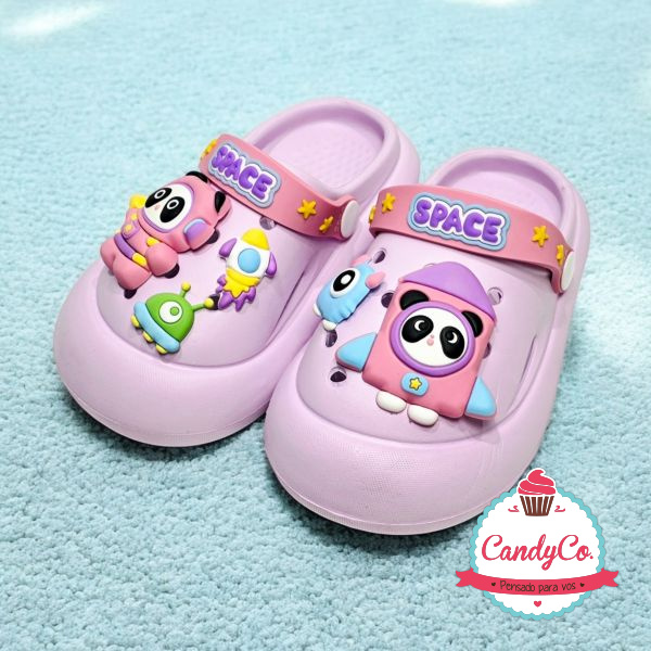 Crocs con Pins Diseño de Oso Panda Astronauta, Cohete Space