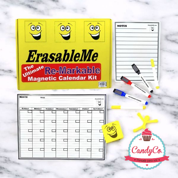 Set de Planificador Mensual, Planilla de Notas Imantados, Fibras X5, y Borradores en Caja Erasableme Re-Markable Magnetoc Calendar Kit
