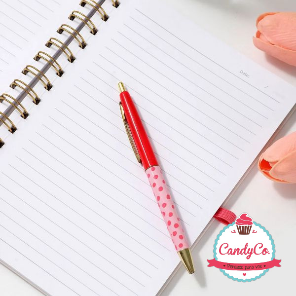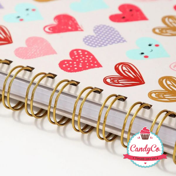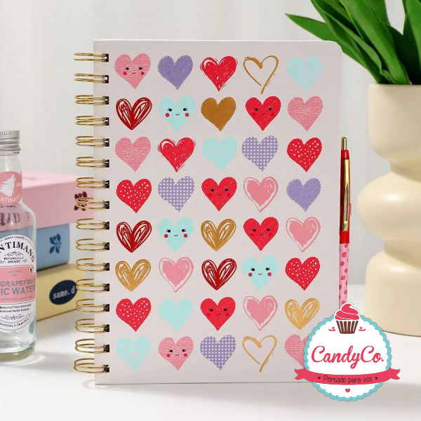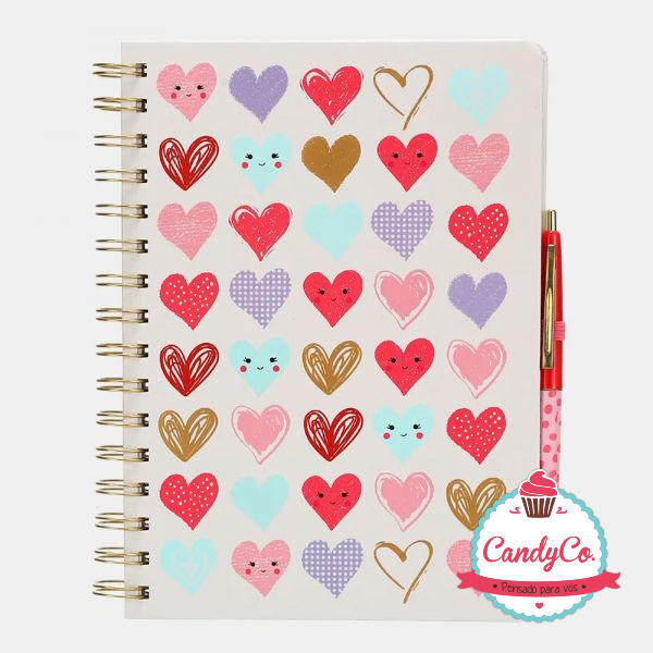 Set de Cuaderno Anillado Estampado con Diseño de Corazones y Lapicera Retráctil