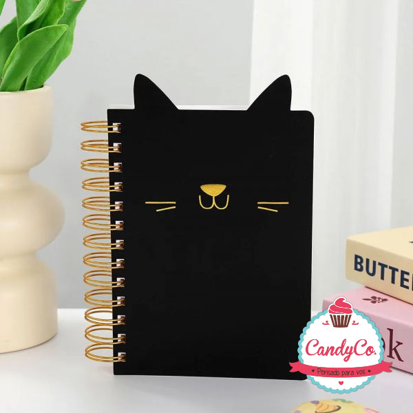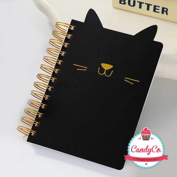 Cuaderno Anillado con Diseño Dorado de Gato y Orejas